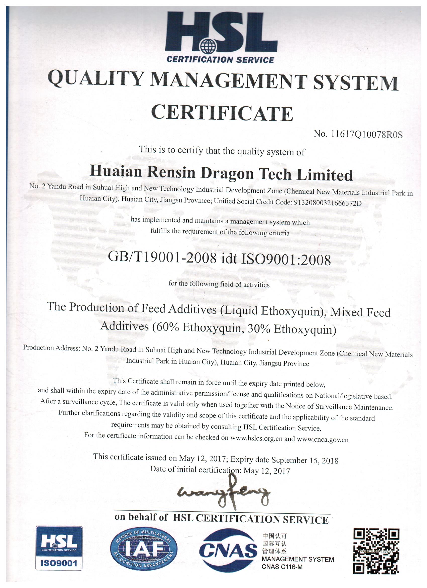 潤龍科技乙氧基喹啉自投產以來,生產穩(wěn)妥、安全、質量可靠,生產理念堅持走全球一體化道路,所投產的產品全部基于國際質量水平的技術基礎之上實施,主營產品“乙氧基喹啉”已家喻戶曉,暢銷亞洲、歐洲、南美洲、北美洲、大洋洲等30多個國家和地區,年出口占比高達80%以上。同時,與國內多家百強企業(yè)形成強力的合作關系。